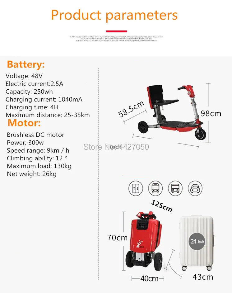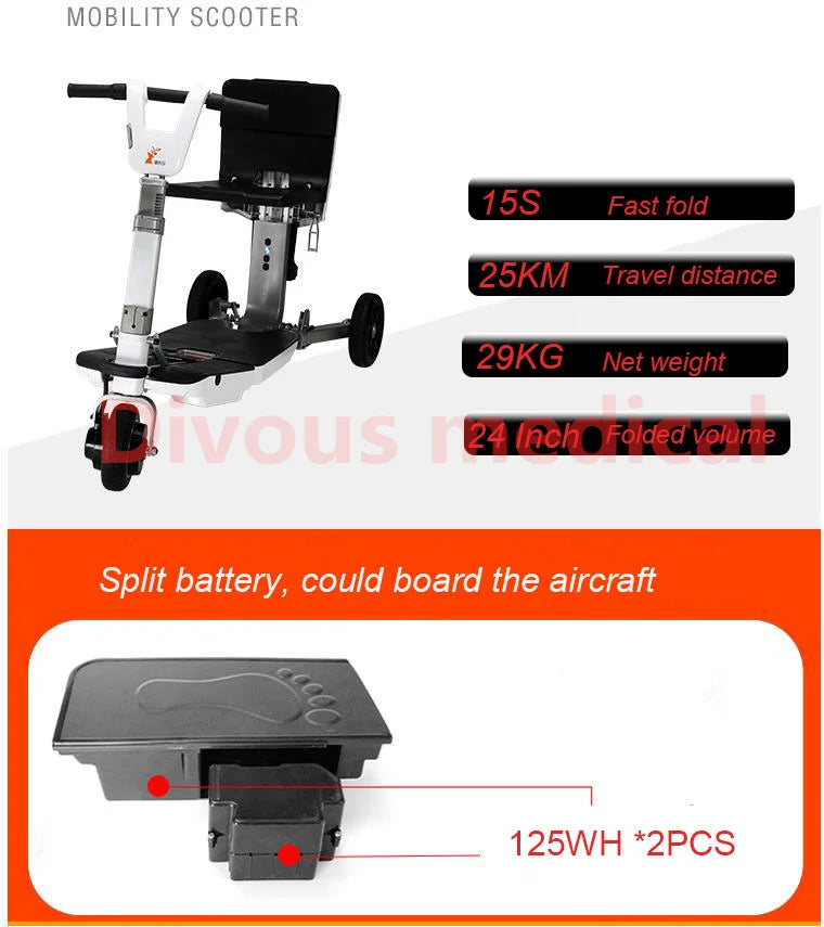 Scooter de mobilité 35km en autonomie , tricycle pliable pour adultes homologué pour le transport aérien, voiture électrique